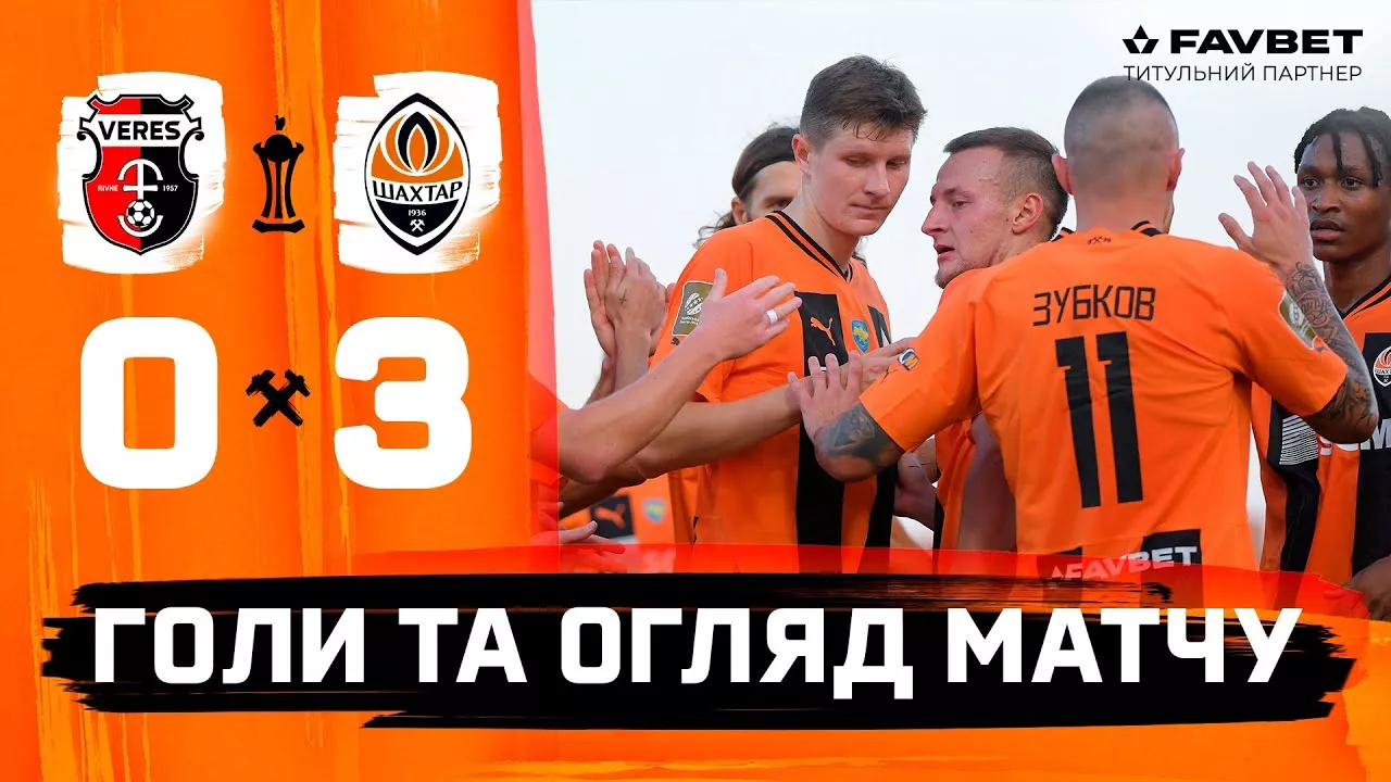 Дивіться огляд матчу 1/8 фіналу Кубка України, у якому «Шахтар» переміг «Верес» (3:0) у Рівному. «Верес» – «Шахтар» – 0:3 Голи: 0:1 Кащук (65), 0:2 Бондаренко (68), 0:3 Очеретько (90+1) 🧡 Підписуйтеся на наш канал, аби не пропустити нові відео й трансляції: https://www.youtube.com/user/shakhtartv?sub_confirmation=1. #Шахтар #Shakhtar #футбол #football #Україна #Ukraine