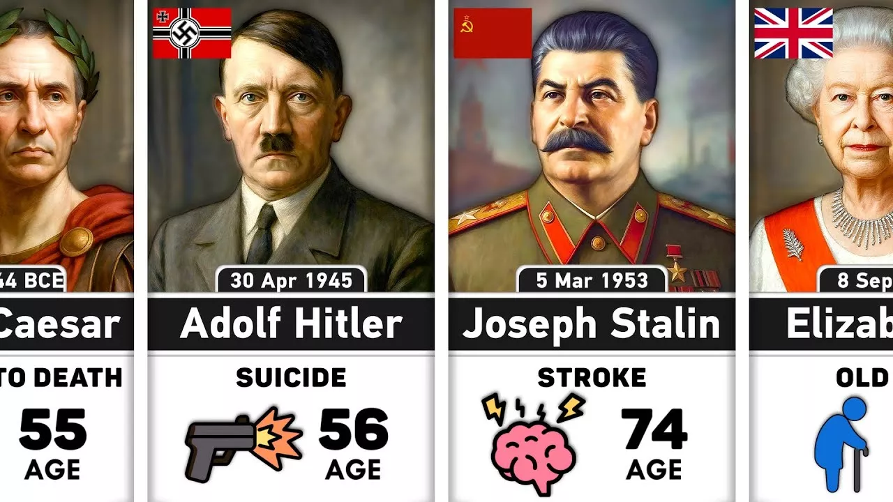 I have created a video about the Death Reasons of Famous World Leaders | From Ancient Emperors to Modern Presidents! In this video, you will see how different world leaders died, from ancient rulers and emperors to modern-day presidents. Each case is placed in a clear timeline, showing the death reasons of famous world leaders and giving a full picture of how world leaders died across history. The details shared in this video are based on diverse sources and my individual research. Every image shown in this video is based on their paintings and photos More videos are on the way, so let's look forward to it. 📜 Feel free to Share Your Thoughts and Opinions about The Video, History in General and comment down below your thoughts and suggest what kind of videos you would like to see. I would be more than happy to create content my viewers find enjoyable!!! 🔥 Make Sure That If You Enjoy The Content, Like The Video(for algorithm) And Share It To Your Friends who May Also enjoy this kind of History content as well. 🔥 Please Consider Subscribing For More Content like This one, It Motivates me, To Improve The Content for the Future and give you the best possible experience this kind of content can offer. Disclaimer: The information provided in this video is for educational and entertainment purposes only. While we strive for accuracy, historical facts may vary and should be independently verified. Additionally, any images or illustrations depicting historic events or figures are for visual representation only and may not reflect exact historical reality. Viewers are encouraged to conduct their own research and consult multiple sources for a comprehensive understanding of history. ➤Video is according to the fair use rules from YouTube: Copyright Disclaimer Under Section 107 of the Copyright Act 1976, allowance is made for "fair use" for purposes such as criticism, comment, news reporting, teaching, scholarship, and research. Fair use is a use permitted by copyright statute that might otherwise be infringing. Music: 1. 'Goliath' by Scott Buckley – released under CC-BY 4.0. www.scottbuckley.com.au 2. "Prepare for War" by Alexander Nakarada https://www.youtube.com/watch?v=shymBOHp0nw&list=RDshymBOHp0nw&start_radio=1 Additional Tags: world leaders, death reasons of famous world leaders, how world leaders died, deaths of world leaders, assassinated leaders, famous leaders deaths, history of world leaders, ancient emperors deaths, modern presidents deaths, death timeline of leaders, famous assassinations, rulers deaths in history, kings and emperors death reasons, presidents deaths history, leaders assassinations, world leaders death history, timeline of leaders deaths, leaders killed in history, famous rulers deaths, leaders causes of death, history, ancient history, world history, historical figures, famous world leaders, world leaders death, how famous world leaders died, famous people death reason, age of death famous people, famous people by cause of death, how famous leaders died, how world leaders died, how all world leaders died, world leaders died, world leaders who died, famous leaders who died, how leaders died, how famous dictators died, famous leaders around the world, how famous kings died, kings and queens deaths, pharaohs deaths, roman emperors deaths, medieval rulers deaths, assassinations of emperors, assassinations of kings, assassination of monarchs, legendary leaders deaths, world monarchs deaths, tragedies of kings, tragic deaths of emperors, historical rulers deaths, rulers assassinated in history, ancient kings who died, medieval monarchs assassinated, famous sultans deaths, famous conquerors deaths, emperors who died young, rulers killed in battles, kings killed in wars, rulers who died in exile, mysterious deaths of rulers, unexplained deaths of monarchs, famous historical leaders who died, shocking ruler deaths, assassinated prime ministers, assassinated world leaders timeline, deaths of ancient rulers, monarchs assassinations, dynasties and rulers deaths, emperors downfall and death, great leaders deaths in history, how ancient rulers died, famous deaths in history, assassination history world, kings murdered in history, history of assassinated leaders, list of rulers deaths, tragic stories of monarchs, rulers deaths around the world.