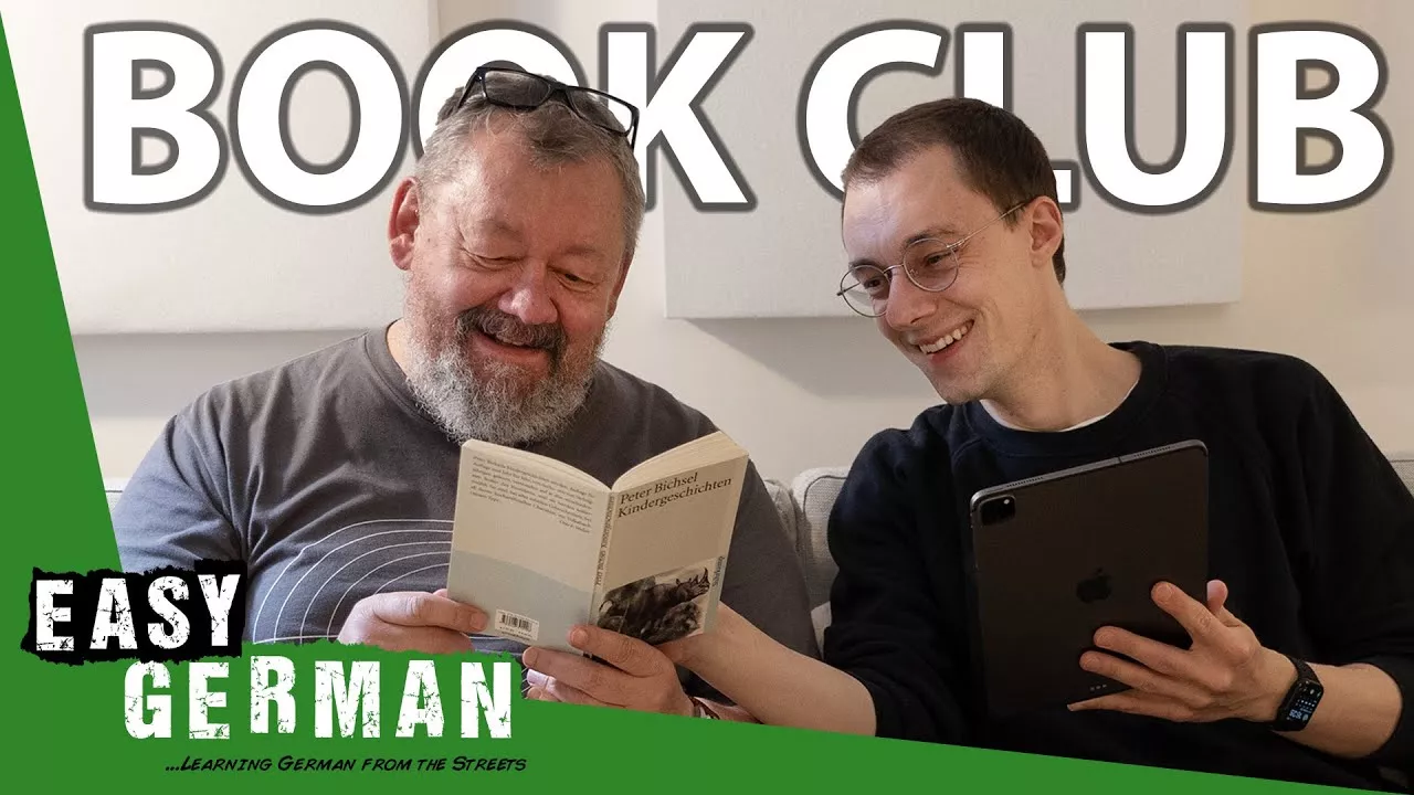 📕 HOW TO JOIN OUR BOOK CLUB: https://www.easygerman.org/bookclub In the Easy German Book Club, taking place from July 10 and ends on August 25, 2023, we'll be reading a book of short stories — one story each week for seven weeks. You'll practice your German through reading, discussions, writing tasks and more. Learners of all German levels are welcome. HOW TO PARTICIPATE Step 1: Buy the Book You can do this directly on our website: https://www.easygerman.org/bookclub Step 2: Become a Member Signing up takes just a few minutes and it’s easy to cancel your membership at any time: https://www.easygerman.org/membership Step 3: Join us on Discord You’ll find our chapter discussions and your weekly writing-tasks in the #book-club channel: https://help.easygerman.org/en/articles/1756238339-connect-to-discord --- Hosts of this video: Janusz Hamerski/Manuel Salmann Camera: Rawad Sabbagh Edit: Chris Thornberry Translation: Manuel Salmann