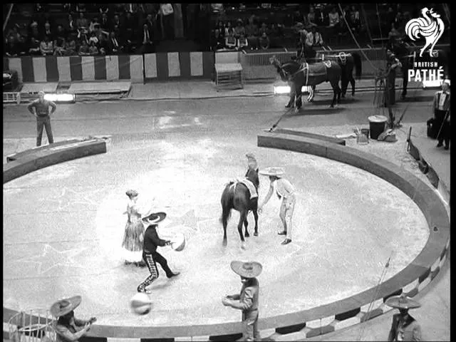 No title - Circus comes to town. New York, America (USA). L/S pan down to circus parading, C/U as clown's hair stands on end. M/S's elephants. Various shots parade. Pan across circus in Madison Square Garden. M/S elephant carrying girl in mouth. Various shots horse kicking balls from the circus ring. L/S tigers in ring. M/S as tiger gets onto horse's back and the horse trots round the ring. The tiger jumps off the horse, walks across the ring and meets it coming round and jumps back on. M/S children in crowd. L/S of the tiger standing up on horse's back. FILM ID:2025.21 A VIDEO FROM BRITISH PATHÉ. EXPLORE OUR ONLINE CHANNEL, BRITISH PATHÉ TV. IT'S FULL OF GREAT DOCUMENTARIES, FASCINATING INTERVIEWS, AND CLASSIC MOVIES. https://www.britishpathe.tv/ FOR LICENSING ENQUIRIES VISIT https://www.britishpathe.com/ British Pathé also represents the Reuters historical collection, which includes more than 136,000 items from the news agencies Gaumont Graphic (1910-1932), Empire News Bulletin (1926-1930), British Paramount (1931-1957), and Gaumont British (1934-1959), as well as Visnews content from 1957 to the end of 1984. All footage can be viewed on the British Pathé website. https://www.britishpathe.com/