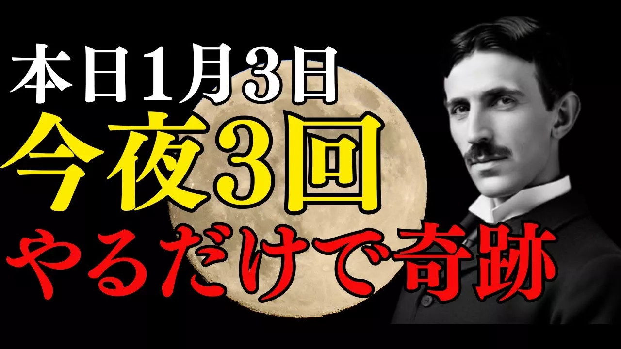 2026年1月3日。ニコラ・テスラが愛した数字「3」と、強力な浄化力を持つ満月「ウルフムーン」が重なる、奇跡の夜が訪れました。 この動画では、テスラの物理法則と月の引力を利用し、潜在意識を強制的に書き換える「テスラ・コード・アクティベーション」を行います。 やることは極めてシンプルです。 動画の誘導に従い、ある言葉を「3回」繰り返すだけ。 理論解説から実践ワーク、そしてそのまま眠れる誘導瞑想まで。 今夜、あなたの現実に「物理的な奇跡」を起こすための儀式を執り行います。 「変わりたい」と願うのはもう終わりです。 今夜、「変わった」という事実を受け取ってください。 ※この動画は、静かな環境で、リラックスしてご視聴ください。 ⬇️チャンネル登録お願いします! https://www.youtube.com/channel/UC7xP8EQY10dadQGnR-mtJdA?sub_confirmation=1 VOICEVOX:青山龍星 #偉人 #潜在意識 #人生好転 #スピリチュアル #成功哲学 #波動 #教訓