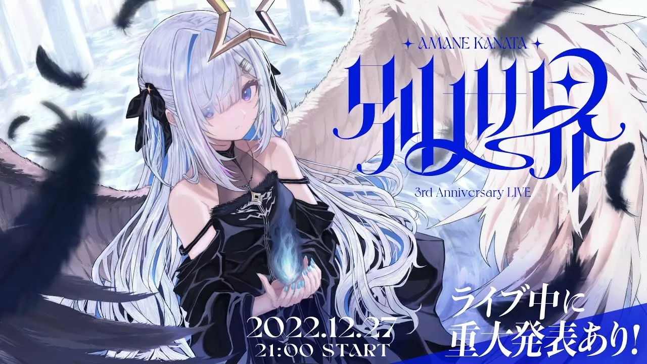 いつも応援してくれるみんなに、少しでも恩返しができますように。 🌃 天音かなた 新曲 「別世界」 FULL Anime MV → https://www.youtube.com/watch?v=Ktk_EDLDPeY Streaming/DL → https://cover.lnk.to/BetsuSekai 🌃 天音かなた活動3周年記念グッズ https://shop.hololivepro.com/products/amanekanata_an3rd 🌃 「別世界」アンコールLIVE / "Another world" Encore 3DLIVE https://www.youtube.com/watch?v=9Jx4YpL0fXk メンバーシップはこちらから💫 https://www.youtube.com/channel/UCZlDXzGoo7d44bwdNObFacg/join ----------------------------------- 💙Produce 天音かなた 💙キービジュアル ひのまる 💙ロゴ・サムネ制作 玉野ハヅキ 💙ダンス振り付け・指導 明香里/どんぐり 💙OPイラスト制作 うしろめ 💙OP映像制作 もえこ 💙背景映像制作 神稲たーむ/よしだなすび/紺色。/空橋ナオト 💙一部映像制作 小鳥遊晴 💙背景イラスト制作 檀上大空 💙音源制作 日南めい/KosK/esP526/まつこ/クックルP Symny/きゅん/犬絵/菅野聡志/芝山武憲 💙ティザー映像制作 Syamo.G-しゃもじ- 💙Cooperation aika/mamiko/津田/りお おしおしお 💙SpecialThanks ホロライブスタジオ班/スタッフさん/マネージャー陣 ホロライブリスナーのみんな/ホロメンのみんな へい民 ※一部収録となっています ※配信被せ禁止枠ではありません